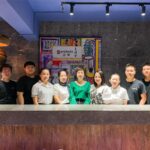 3、双脚着地,一手握空拳轻敲大腿内侧。